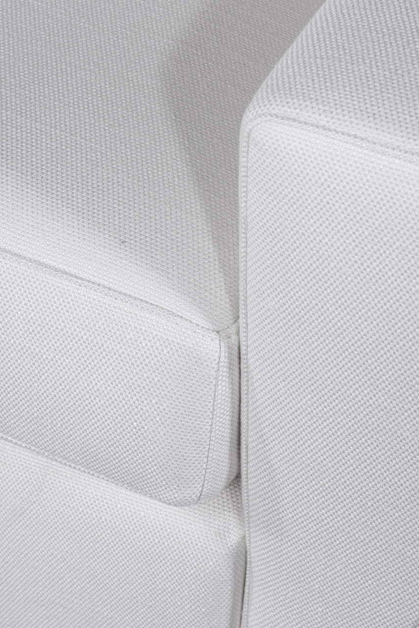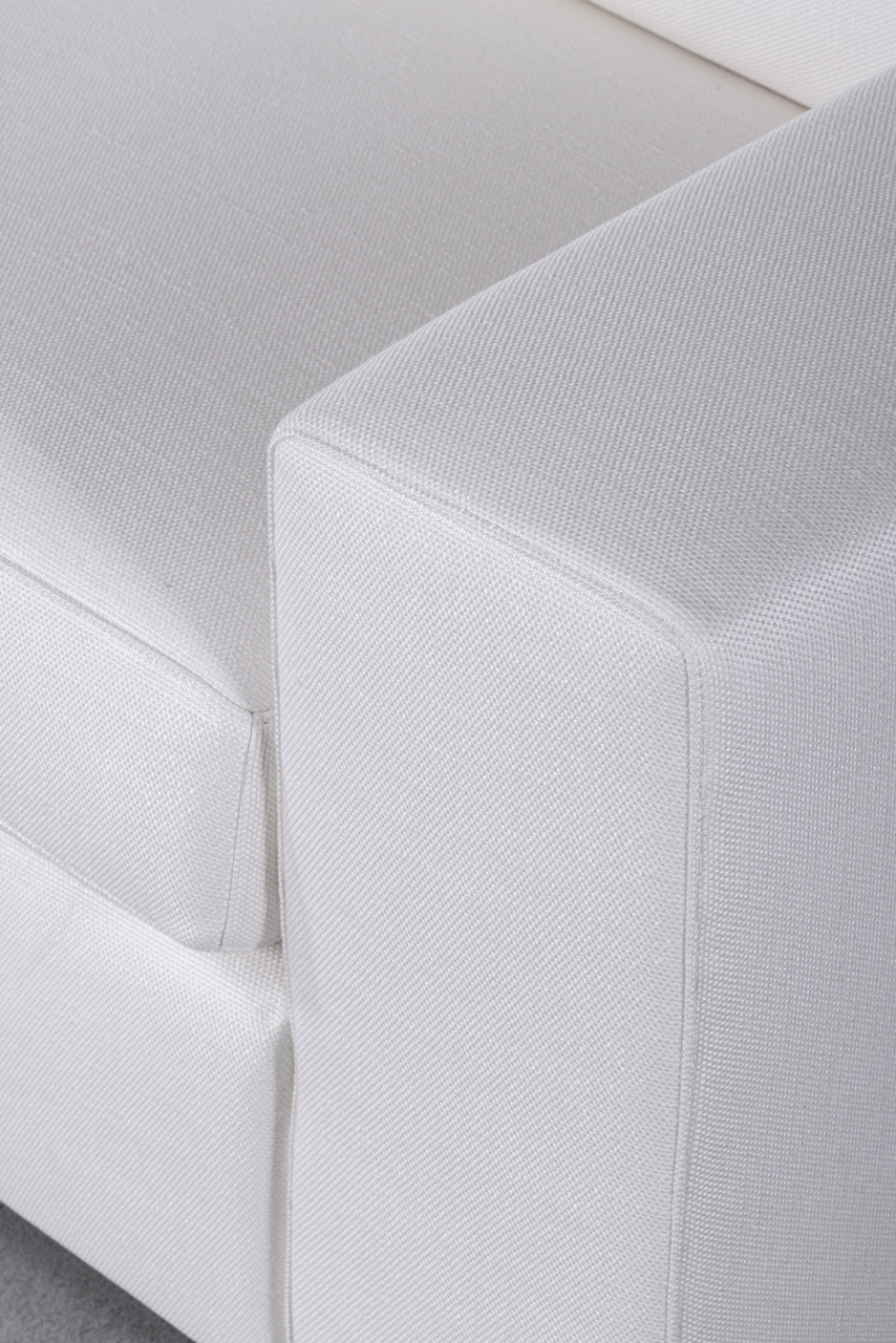 La sua struttura compatta si adatta con naturalezza a qualsiasi ambiente, mentre le imbottiture ergonomiche offrono un’accoglienza ferma ma confortevole. I dettagli sartoriali – come le cuciture perimetrali pulite e la perfetta tensione del tessuto – rivelano un lavoro di alta qualità artigianale.