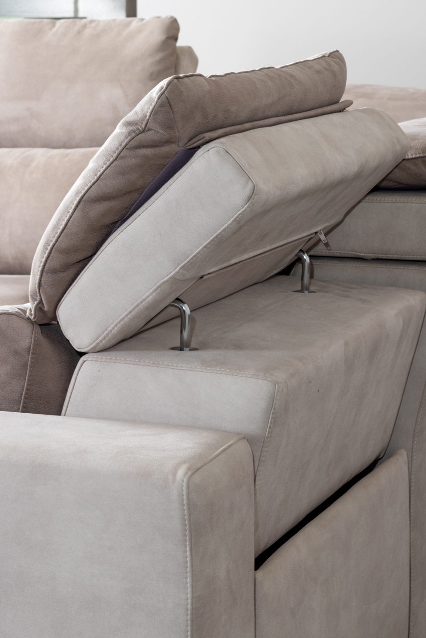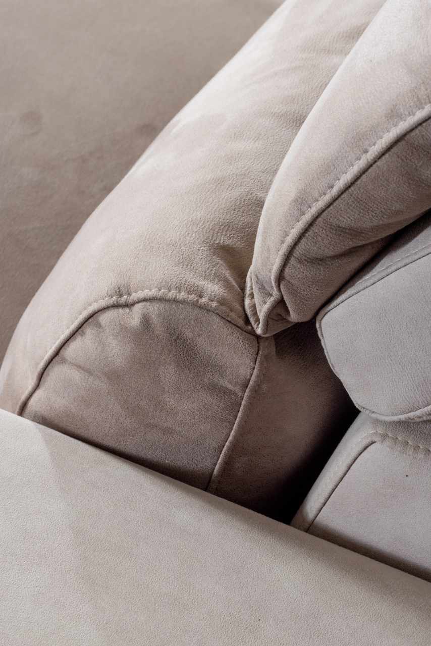 Le sedute generose sono affiancate da poggiatesta reclinabili a più posizioni, ideali per adattarsi a ogni momento della giornata: dalla conversazione alla lettura, fino al completo relax. I moduli componibili permettono la massima personalizzazione degli spazi, mentre i dettagli bicolore e i profili cuciti con cura danno personalità e stile senza eccessi.